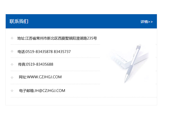 地址:常州市新北區友邦商務大廈1幢16、17層  電話:0519-85101652  傳真:0519-85112595  郵編:213022  網址:www_cz-jiayue_cn.whds110.com  郵箱:xiajifengaa@163.com